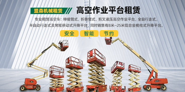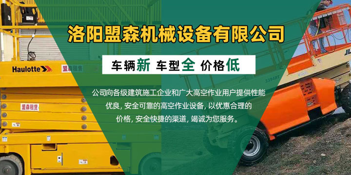 洛阳盟森机械设备有限公司是洛阳一家的、种类较全的高空作业设备租赁公司!租赁高空车:20米伸缩臂式、17米折叠臂式、剪叉液压高空作业平台,6米、10米、12米全自行走式,11米、14米半自动行走式及11米常规移动式升降平台,满足客户的各种高空施工条件要求。同时销售有8米—25米铝合金桅柱式升降平台。